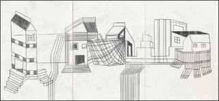 — Contruction 2, 2007. Crayon sur papier. Triptyque, 21 x 29,7 cm chaque feuille.
