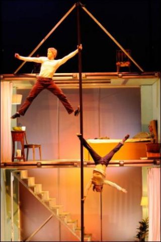 Après La Vie, nous retrouvons un homme qui entend des voix lui ordonner de se suspendre par les orteils à un trapèze dans le bureau de son psy. Atteint de troubles obsessionnels compulsifs, il tente d’échapper à une marée humaine par une série d’acrobaties et une femme surmonte son agoraphobie en se suspendant dans les airs. Insomnie, amnésie, paranoïa, hypocondrie… jonglerie, mâts chinois, roue allemande et corde aérienne, Psy juxtapose certaines des facettes les plus sombres de notre esprit aux arts du cirque et nous révèle la beauté, l’humour et finalement l’omniprésence de nos névroses. Psy transforme ainsi nos angoisses en performances acrobatiques insoupçonnées.
