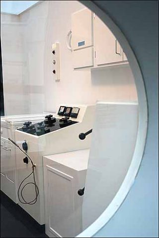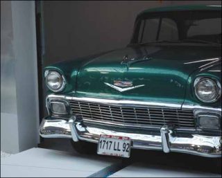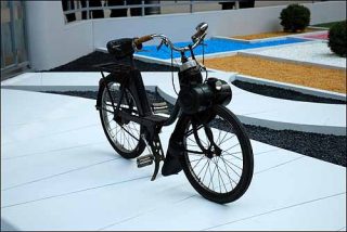 Du solex de Hulot à la chevrolet de M. Arpel, tous les accessoires de la Villa Arpel sont recomposés dans un décor reproduit à échelle 1. Conçue par Jacques Lagrange pour le film Mon oncle (1958), la Villa Arpel est la véritable vedette du film comme l’a si souvent dit Tati. Cette phrase prend tout son sens quand, par intermittence, les deux hublots de la Villa reconstituée s’allument : le bâtiment revêt l’allure d’un personnage à part entière, scrutant du coin de l’œil les va-et-vient des visiteurs.