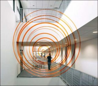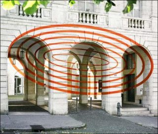De cet espace construit et ordonné aux arcs métalliques caractéristiques d’une architecture du 19ème siècle, Felice Varini propose une lecture inédite, à la fois contemplative et dynamique. Longeant la prairie, cette galerie couverte de la Grande halle est devenue depuis longtemps un espace privilégié des promeneurs. Felice Varini en dégage des mouvements, des couleurs et des rythmes pour offrir une création inattendue: Arcs de cercle sur diagonale. Une peinture rayonnante s’ouvre face à nous, et va s’achever au lointain, sur un pan de mur de la façade de la Philharmonie 2.