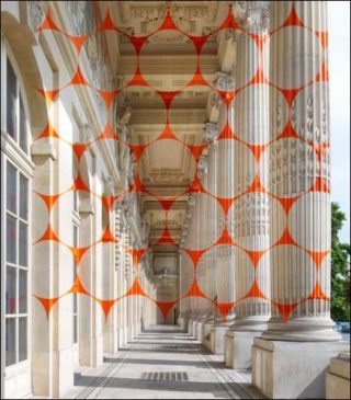 C’est dans l’ensemble des points de vue que réside le travail de Felice Varini. Dans ces explorations cinétiques auxquelles il nous invite, on y cherche un point de vue, on y croise des fragments de figures géométriques, on y découvre des portées de lignes surprenantes.