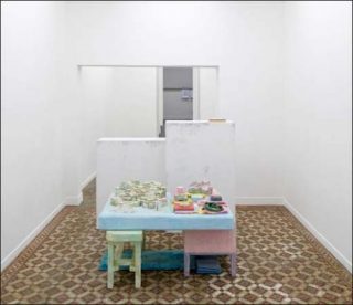 Regardant de près une sculpture en bois récente d’Ernesto Sartori, on se dit que la proposition n’est pas aussi évidente qu’il n’y paraît à première vue. Ce mini mobilier, composé d’assemblages approximatifs en bois plâtré et coloré, est-il fait pour que nous nous sentions plus grands et moins dépassés par le monde des objets? Ou bien est-ce au contraire la possibilité de regretter sa taille humaine pour préférer s’imaginer circuler à l’intérieur des choses?