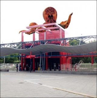 — Les Plasticiens Volants (France), Poulpe, 2015. 8 x 8m au sol, 8m de haut, les tentacules s’étendent sur 10m de chaque côté.