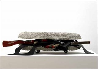 — Balloon Kid, 2008, bois, moquette, béton, plâtre, aérosol. Dimensions variables.