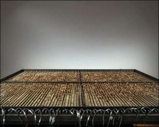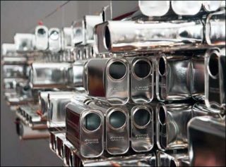 Ces vibrations sont suffisamment subtiles pour être quasiment imperceptibles à l’Å“il mais suffisamment puissantes pour générer du son. Jouant sur les reflets liquides des boîtes, l’Å“uvre met l’accent sur la transition entre ce qui peut être vu et ce qui peut être entendu.