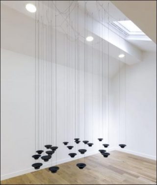 Mais c’est au Japon que le travail va être très rapidement reconnu et accueilli avec enthousiasme: l’artiste y est régulièrement invité pour des concerts-performances et des expositions où il peut montrer ses dessins et ses sculptures. La relation à ce pays n’est cependant pas un hasard: il y a dans le travail de Rolf Julius un extrême souci de précision formelle et d’élégance qui tient aussi à la place que le vide occupe dans les œuvres. Un lien évident avec la culture japonaise classique se retrouvera dans la manière d’intégrer des bols ou récipients de cuisine quotidiens comme diffuseurs sonores, mais surtout dans les nombreuses occasions d’installer ses «petites musiques» (Small Music est le titre du recueil de ses textes paru en Allemagne) dans des jardins traditionnels.