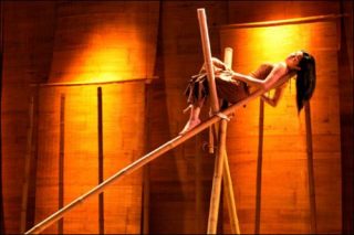 Dans un décor minimal, le bambou, sous toutes ses formes, et de toutes les tailles, manipulé par les artistes, transforme l’espace et redessine des paysages typiques: jonque, maison sur pilotis, pont suspendu. Monté et démonté en quelques clins d’œil, il est l’agrès éphémère qui vient servir les contorsions, les équilibres, les sauts, les jongleries. Un orchestre de cinq musiciens explore les sonorités des instruments ancestraux (vielle, tambour, flûte, cithare, etc.) pour accompagner ces histoires de vies.
