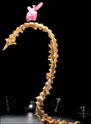 Un dragon kaléidoscopique sort d’un pan de son manteau, aspiré par d’imperceptibles tourbillons, une danseuse étoile naît sous nos yeux, là un pas de deux, ici les feux d’artifices d’un grand corps de ballet…