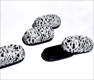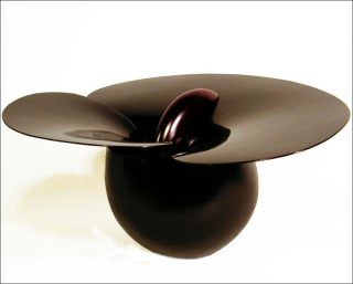 Le travail de Nagatoshi Onishi répond à d’autres exigences bien qu’intimement nourri de cette tradition artisanale ancestrale. Son style épuré sinon simple semble l’en éloigner. Mais on retrouve indéniablement une même précision, une même patience, associées à une recherche formelle aigue. Ses objets sont d’abord créés selon une technique particulière consistant à plonger dans un bain de laque les différentes pièces de matériaux qui vont le constituer. Une telle technique permet de donner libre cours à l’imagination de Nagatoshi Onishi car elle garantit l’extrême souplesse des matériaux utilisés, auxquels on peut par là -même donner indéfiniment forme. Les objets laqués d’Onishi ne sont pas décorés et apparaissent comme de pures formes monochromes, noires, rouges ou dorées librement inspirées des formes organiques naturelles. Et c’est une poésie des formes que composent les pièces uniques ici présentées.