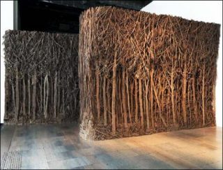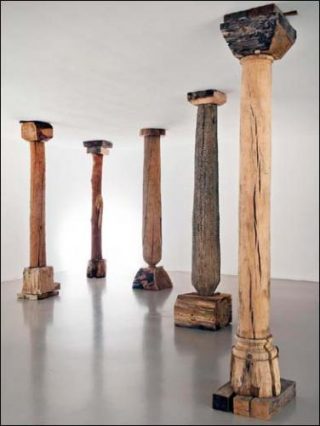 Même si l’artiste aujourd’hui en retient souvent le tronc couché, abattu, ou la souche, il n’oublie pas que l’arbre qui relie le monde d’en haut et le monde d’en bas nous a donné l’idée essentielle du pilier (ou de la colonne), alors que son tronc une fois débité en planches permet de construire des cabanes et que ses branches coupées en bûches alimentent le feu où l’on peut cuire.