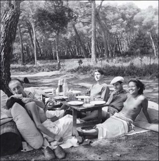 — Nusch, Paul Eluard, Roland Penrose, Man Ray, Ady Fidelin. 1937.
