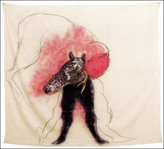 Pour «Latin Lovers», le Frac présente deux pièces de ce créateur polyfacétique: une installation, composée d’une ligne de lampes (Quatro di fili elettrici, 1967) et une sculpture composée de chiffons (Muro di stracci, 1968). D’autres artistes, tout aussi importants sont également au rendez-vous, comme Alighiero e Boeti, dont le travail est toujours réalisé en collaboration avec des artisans d’autres cultures. C’est le cas ici dans l’alphabet personnalisé des collections du Frac (Mettere al mondo il mondo, 1972-1976), alphabet inspiré de motifs utilisés au Moyen Orient. Giovanni Anselmo quant à lui crée des environnements avec une grammaire plus complexe, composés de la juxtaposition de dessins et des matériaux divers. La collection d’Arte Povera du Frac n’est pas en reste. C’est avec des artistes comme Mario Merz qui filtre des objets et parties d’animaux qu’il trouve dans des forêts pour ensuite les mélanger avec des néons ou des peintures et dessins que la matière laisse entrevoir son état sauvage. La relation à la matière brute est en effet une composante essentielle de l’art de ces «Latin Lovers».