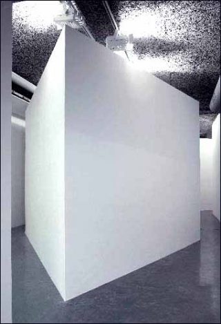 Le goulet menant au cœur de la structure donne l’impression d’être absorbé par les murs, puis l’espace se dilate à nouveau, redistribué autour des piliers de la galerie. L’absence d’angle droit dans cette chambre close ajoute à notre sensation de déroute. Où que l’on se place, l’espace semble nous contenir, mais cette sensation contraignante cède progressivement devant la lumineuse blancheur des murs. Recouverte de craie, leur surface absorbe intensément la lumière et convertit ces pans lisses arrêtant le regard en une surface vibrante et sensible.