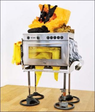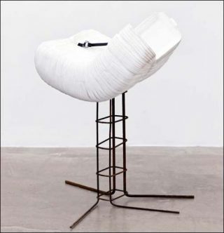 L’enjeu est formel, (revenir à un expressionnisme, parfois presque chamanique, aller disséquer ce que la sculpture a dans le ventre), mais pas simplement. Il est aussi à insérer dans une histoire actuelle: rechercher autour de nous ce qui peut faire matière aujourd’hui, sortir du cadre pour porter une attention sur un quotidien délaissé, voire méprisé dans sa dimension humaine autant que politique.