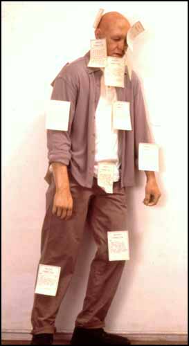 — Le Chien, 2000. Cire, vêtements, papier, 175 x 50 x 30 cm
