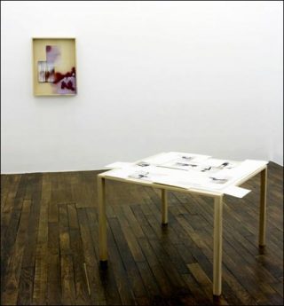 — Jimmy Robert, Sans titre, 2010. Tirage jet d’encre sur papier Archivé, table en MDF et Multiplex plaqués hêtre et hêtre massif. 100 x 100 x 70 cm