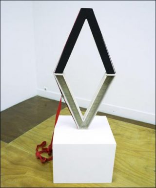 L’artiste teste notre regard. Impossible de déterminer la vraie nature de cet objet. En imaginant qu’un chat vienne à s’introduire dans l’exposition et à perturber cet édifice savant, à quoi ressemblerait désormais la sculpture?