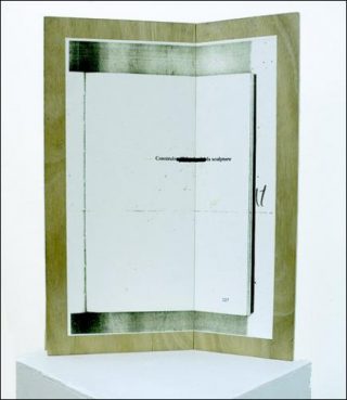 Construir(…) la sculpture, est une Å“uvre en bois qui s’inscrit dans la continuité de L’équilibre des ruines et finalise un processus. Pour sa réalisation, Thomas Klimowski a extrait de son réservoir de formes et de matériaux, une photocopie sur laquelle était inscrite «construir(…) la sculpture». Une sorte d’injonction qu’il a pris au pied de la lettre en réalisant ladite sculpture. C’est aussi une façon pour lui, d’explorer le hasard en mettant en place un protocole artistique qui s’apparente à de l’art conceptuel. En somme un parti pris sérieux et plein d’humour.