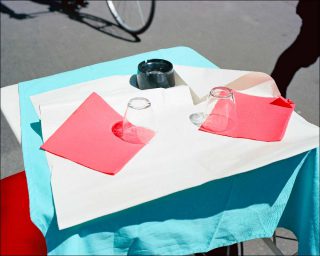 La prédominance de la couleur bleu donne ironiquement sa cohérence visuelle à la série « Le Château rouge ». Elle est déclinée dans toutes les teintes et toutes les formes : une nappe en papier ou un sac plastique, un mur peint ou une étendue d’eau. Complimentée par des touches de rose, de rouge et d’orangé, elle infuse une brise de fraîcheur et de légèreté printanières dans les scènes capturées. Outre leur douceur aquarelle, les photographies de Martin Essl tirent leur beauté des lignes géométriques et des jeux d’ombres qui les traversent. C’est cette composition experte qui retient l’Å“il et transcende le banal en extraordinaire.Â