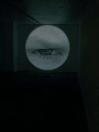 Le dispositif conçu par Claude Lévêque présente une image vidéo sphérique en noir et blanc de deux yeux séparés par un mur. Les yeux ne clignent pas, les paupières ne se ferment jamais. Un tel regard met le visiteur d’autant plus mal à l’aise qu’il est placé en position de voyeur, et que la forme circulaire de l’image donne l’impression de voir ces yeux comme au travers d’œilletons géants.