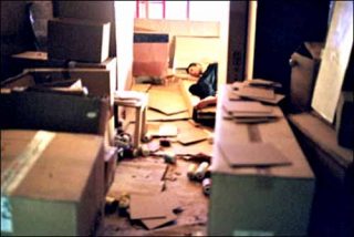 Vous êtes dans une petite pièce carrée, dans le noir, assis sur une pile de matelas. Face à vous, un film défile en boucle : douze minutes de description d’un lendemain de fête, douze appartements d’un même immeuble peuplé de noceurs endormis. En même temps qu’elle gravit un à un les étages de l’immeuble, la caméra s’enfonce toujours plus profondément dans l’espace, de façon à faire défiler les vestiges de la noce et les corps inanimés de ses acteurs. Vous êtes dans Le Dortoir.