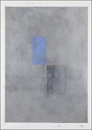 Les images qui l’inspirent restent parfois collées à côté ou sur ses dessins. Untitled (Is painting a construction?) (2011), est un assemblage géométrique de plages de couleurs en nuances de gris, mais dont les contours nets rappellent les structures d’une peinture d’abstraction géométrique. La rigueur de cette construction semble délibérément rompue par la matière picturale posée à la hâte. Nick Oberthaler laisse des taches, des erreurs, il ajoute sur cette trame un papier collé aux bords irréguliers pour rétablir une certaine instabilité.