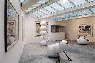 Une exposition de bonshommes de neige en ces temps de fêtes de fin d’année… A première vue, c’est presque normal ; en tout cas, ça le serait si les bonshommes n’avaient pas un air étrange…