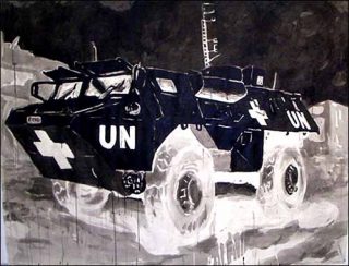 — UN Armored Vehicle, 2006. Acrylique sur papier. 156 x 193,5 cm.