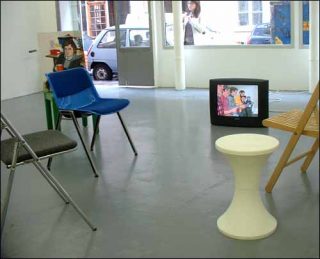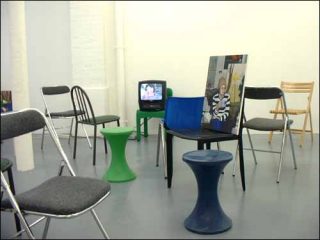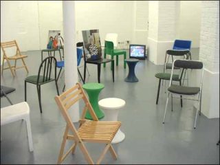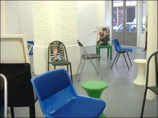 A première vue, l’installation de James Lynch est assez froide, avec ses chaises dépareillées créant une ambiance de salle d’attente déserte. Pourtant, tout semble être fait pour nous retenir : les sièges, les écrans télévisés directement posés sur le sol invitent à s’asseoir.