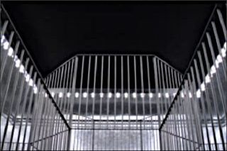 La complexité d’une époque à la dérive s’exprime dans l’installation de Claude Lévêque à Venise par un agencement de formes, de signes, de sons et d’espaces. Les visiteurs — corps et sens — sont contraints d’évoluer dans quatre couloirs, entre des barreaux, comme des fauves ou des prisonniers dans leurs cages. A chacune des extrémités de trois couloirs flotte le drapeau noir de l’anarchie, mais il est enfermé lui aussi, inaccessible drapeau-fantôme des utopies perdues.