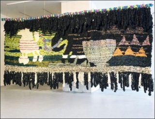 Le duo imagine ici plusieurs pièces de grandes dimensions utilisant quelques unes de ses techniques fétiches, comme la tapisserie, la céramique, la taille directe et la peinture sur soie. Intitulée «Le Hall», l’installation cherchera à tirer parti des caractéristiques architecturales de l’Espace 315, en provoquant une rencontre entre le corps du spectateur et ces œuvres monumentales, ornées pour certaines de motifs obéissant à une logique proche de celle du rébus, et choisis autant pour leur qualités plastiques que symboliques.