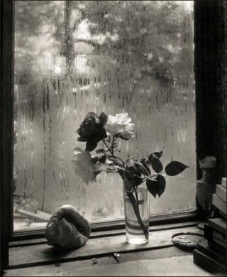L’autre étape du parcours est consacrée à la série emblématique de Josef Sudek, Depuis ma fenêtre. Les projets autour d’une même scène ou objet sont l’occasion de traiter en profondeur son sujet. Depuis la fenêtre de son atelier, le photographe observe le monde extérieur et en enregistre d’infimes changements : les clichés suivent le cycle de l’eau, à mesure que la buée sur la vitre devient gouttes d’eau puis ruissellement comme des larmes.