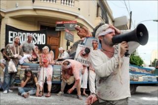 On le verra avec le travail du collectif russe Radek Community et Dmitry Gutov, le collectif argentin Internacional Errorista, ou encore l’artiste afghane Lida Abdul, israélienne Yaël Bartana, cubaine Tania Bruguera, new yorkais Mark Tribe. Ces pratiques performatives du cinéma et de la vidéo rendent compte au mieux de la puissance d’agir des corps, de leur puissance de vie, cette capacité d’agir qu’ont les sujets politiques. C’est alors l’espace politique du cinéma qui se trouve multiplié, élargi, augmenté. Réouvrir et faire proliférer les possibles, construire des récits alternatifs, produire des contre-récits historiques, à rebours des idéologies de la fin de l’histoire, voilà un des enjeux majeurs de ces pratiques critiques.