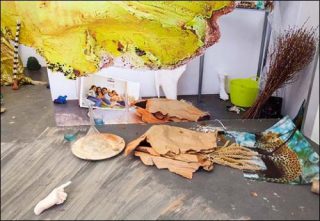 La façon dont Emmanuelle Lainé arrange objets trouvés et éléments personnels, qu’elle combine avec de nouvelles pièces fabriquées in situ, révèle un lien profond avec la sculpture classique. Ce grand appareil de composition résonne également avec d’autres genres artistiques, comme la nature morte ou la peinture de paysage.