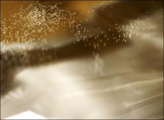 Pour cette exposition, elle est allée plus loin que l’emprunt d’images et/ou de films à des scientifiques. En effet, elle est à l’origine, avec Patrice Le Gal, du processus créateur de ces dernières. Les œuvres réalisées induisent un sentiment de familiarité tant le processus de création de la vague, ici immortalisé, nous est proche. Lydie Marchi, mai 2013.