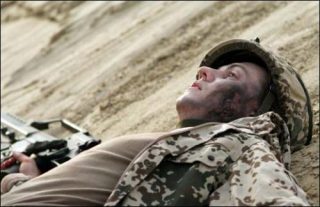 Des images de guerre, des traumas jaillissent et perturbent la linéarité du récit. Quelle trace mémorielle garde-t-on de ces moments choquants? Comment les images du passé se fixent, s’assemblent, s’entremêlent, se déforment? Le fils Daniel peut évoquer avec humour une anecdote où l’un de ses compères est pris sur le fait par une famille afghane en train d’uriner en pleine montagne. Mais ses rires ne semblent qu’un faible artifice pour estomper l’horreur de la guerre, et le cas de conscience, la culpabilité du jeune Daniel: le chef de famille afghan, déshonoré par le fait que sa famille ait vu le sexe d’un occidental, attaque le soldat qui urinait, et se fait descendre sous les yeux des siens par le reste du peloton allemand. Daniel tente surtout de taire ses angoisses — ou se montre plutôt incapable de les verbaliser. Celles-ci se réveillent à son insu et l’accablent dans des visions cauchemardesques ou des hallucinations (un œil flottant dans un verre de vin, une assiette grouillant d’asticots lors du repas de Noël).