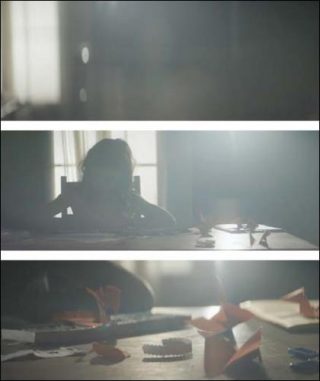 — Maïder Fortuné, Aurore/s, 2011. Installation. Video DV, N&B, muet. VIdeoprojection et Papier calque. 1h 26 min en boucle