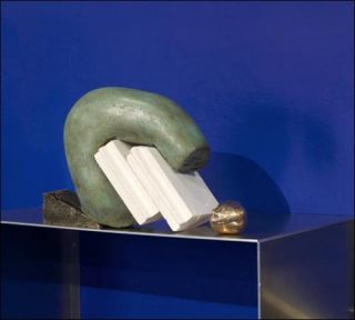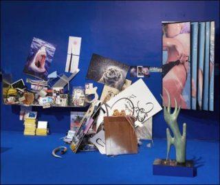 Avec «The Pale Fox», Camille Henrot nous place dans une situation paradoxale. Si son espace, clairement délimité et unifié par quatre murs et une moquette bleus, se présente comme un univers clos et cohérent, son contenu est pour le moins foisonnant et déroutant, de prime abord, pour le spectateur. Nous nous trouvons effectivement confrontés à plus de 400 photographies, images numériques, sculptures, céramiques, livres, journaux et dessins, produits ou récupérés par Camille Henrot, provenant d’horizons divers.