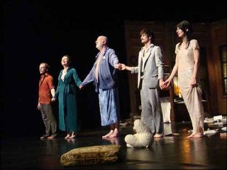 Le couple s’installe dans les meubles du vieillard. Cet emménagement donne lieu à un ballet de cartons à la gloire de l’entreprise « Official Movers ». La jeune mère sans courage, alias Gabriela Carrizo, apporte le berceau, les animaux en peluche de son baigneur et se livre à une variation, artistique et martiale, en dissimulant ses beaux yeux derrière des lunettes de soleil d’un modèle qui rappelle les Ray Ban’s de la série 4100. L’enfant est à la fois présent — le couple se livrera à un pas de deux ou, plus exactement, à un pas de trois, en se passant la patate chaude — et, comme du reste dans la pièce précédente, Le Jardin, réduit à un fétiche (là , un poupon en matière plastique, ici, une photo souvenir). Il est l’avatar ou son contraire, la métonymie du vieillard. Le désenchantement s’exprime parfaitement dans ce passage qui traite de la vie, y compris dans ses aspects les plus morbides.