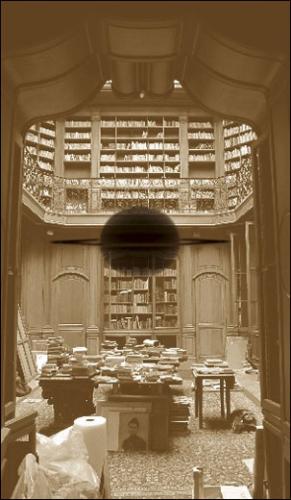 Ainsi, Frédéric Teschner est allé à la découverte du fonds documentaire conservé à la bibliothèque de la maison d’art. En graphiste, il entendait moins y trouver un contenu littéraire ou théorique, qu’un contenu visuel. Il a glané, ici ou là , au gré des pages feuilletées, sur une couverture ou une carte postale, des images, des morceaux d’images avec lesquelles il compose d’autres images qui se déploient dans l’exposition.