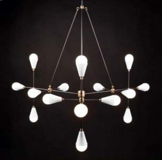 Le lustre Cloud Orb imite la forme d’un nuage. Il est composé de globes de verre givrés à la main pour recréer un effet 19ème siècle. Une source lumineuse centrale est réfléchie par la grappe de globes.