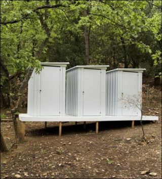 — Colin Champsaur présente son œuvre Remises aux chants secrets 03 et s’interroge sur la manière de faire du différent avec du même, d’utiliser les mêmes matériaux pour créer des formes de prime abord similaires et cependant différentes. Entre contenu et contenant deux types de matériaux se conjuguent, l’un stable et l’autre malléable, puisque mental. Trois remises de jardin disposées sur un socle interrogeant aussi bien le dispositif de la résidence et de l’œuvre in situ que le procédé de la métamorphose et des ses états intermédiaires. Comme dans le jeu des 7 erreurs, le visiteur tentera de trouver les modifications puis trouvant les portes closes, sera amené à penser le contenu de chacune des remises.