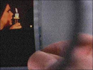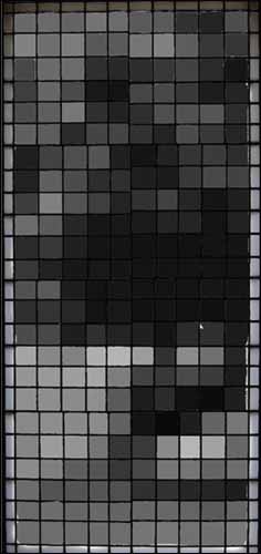 Dans Blow-Up, Nicolas Giraud expérimente le premier. À partir d’une image extraite du film éponyme d’Antonioni, qui n’est elle-même qu’une petite partie d’une photo agrandie par le protagoniste pour élucider un meurtre, Nicolas Giraud a réalisé un vitrail qui, placé à côté de l’image, reproduit à plus grande échelle et avec des carreaux de couleur ceux, gris et plus ou moins foncés, de la photographie de départ. De la photo au vitrail et retour, rien de plus, rien de moins : l’énigme demeure sans que l’on sache lequel de ces deux supports doit nous aider à mieux voir l’autre. Bref, agrandir ne fait pas mieux voir.