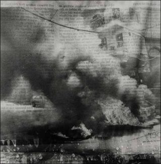 Telles sont les News Pictures de Mikael Levin : pages détrempées de journaux en noir et blanc, masse grise où mots et images brouillent leurs contours et leurs justes rapports. Soumis au régime de l’ère médiatique, le sens des images meurt de l’excès de signes et de leur confusion.