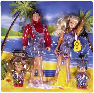 Prenons Happy Days (2004), de Robert F. Hammerstiel: une famille de poupées Barbie — un couple et deux enfants — en tenue de vacances dans un décor de plage, le tout sous plastique et dans des couleurs criardes plus vraies que nature. Faut-il en donner une lecture politique, psychologique ou esthétique?