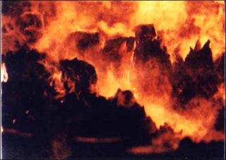 Mais cette lecture ne rend pas justice à la fascination que peut aussi susciter la destruction par le feu, à la jouissance incandescente de la consumation qui abolit toute forme, qui brouille le plaisir serein de la reconnaissance. Si rien n’oblige à cette «psychanalyse du feu», force est toutefois de constater que le feu fait en même temps ici œuvre de création, que c’est en «défaisant» l’objet identifiable du regard qu’il fait l’image et donne à voir quelque chose. Mais cette lecture est-elle encore compatible avec le titre? Ne force-t-elle pas un peu l’image en projetant sur elle l’ambivalence que l’on prête au feu dans toutes les mythologies? La difficulté est ici de décider des limites de l’interprétation.
