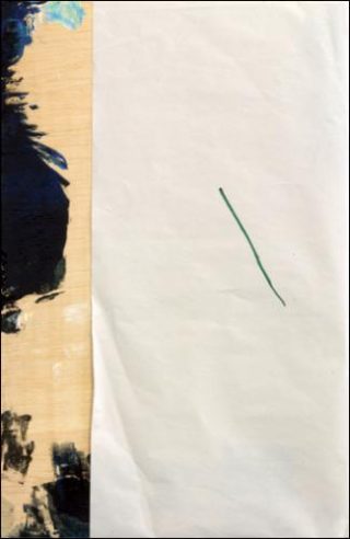 L’aléatoire seul ne semblait pas être de mise, tant le placement paraissait juste. En effet, la réduction de la couleur et du trait à l’essentiel dénote un choix quant au placement. Il ne faut pas négliger une autre sorte de trait obtenu par le pliage, trait obtenu sans outil, responsable de l’apport d’une troisième dimension à la feuille, qui n’est autre chose qu’un objet très plat.