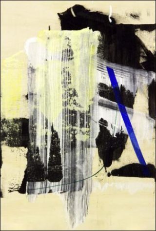 Ces jeux, entre le vide et le plein, se retrouvent au centre de ses images, dessins, peintures. Véritables exercices de recouvrements partiels, les peintures sur contreplaqué affichent autant des plans de peinture, que des gestes de dessin ou des restes de matière picturale ou de bandes adhésives.