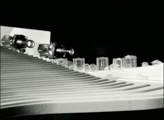 Village modèle est une vidéo qui s’inspire d’un village réel, construit par la Corée du Nord, dans les années 1950. L’objectif étant pour elle de communiquer sur la réussite économique du pays, en montrant une vitrine de luxe. La vidéo propose un voyage fictif dans la sculpture, qui incarne ce village fantôme. La vacuité de ce village est transposée par les jeux de transparence qui désarticulent les constructions architecturales. L’ombre a plus de consistance que le bâti.