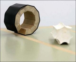 Il obtient, par moulage et assemblage, des objets synthétiques et ambigus. Leur utilité est immédiatement déniée par leur échelle ou leur incomplétude, mais ces machines absurdes ne cessent d’exercer sur le spectateur un fort pouvoir d’évocation. Elles renvoient tantôt à une partition ou à une rythmique, tantôt à un instrument de musique ou à un dispositif sonore.